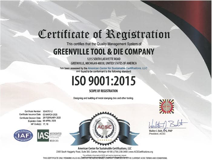 Greenville Tool & Die has membership in the following organizations: